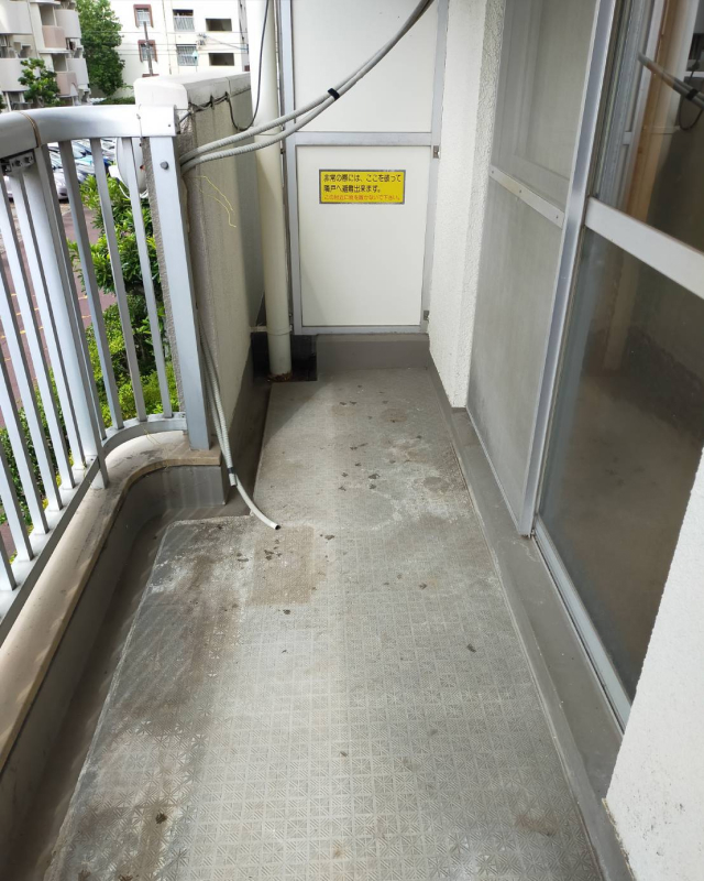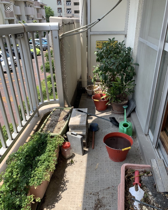 ベランダが鉢植え、プランター、ブロック、不燃ごみ等あり。足が不自由で危ない為、全て撤去しました。